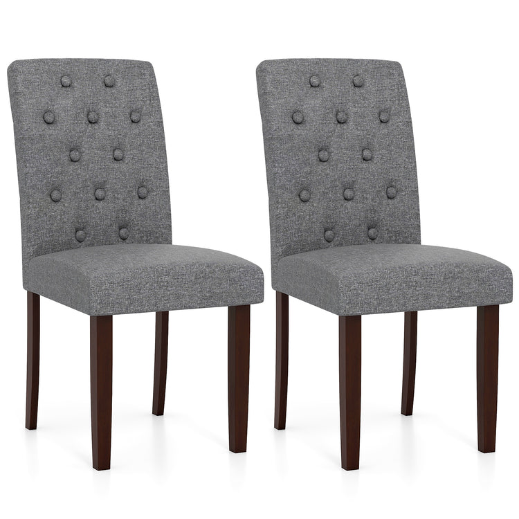 Button Tufted Fabric Upholstered Wooden Dining Chair Set of 2 with High Curved Back, Gray
