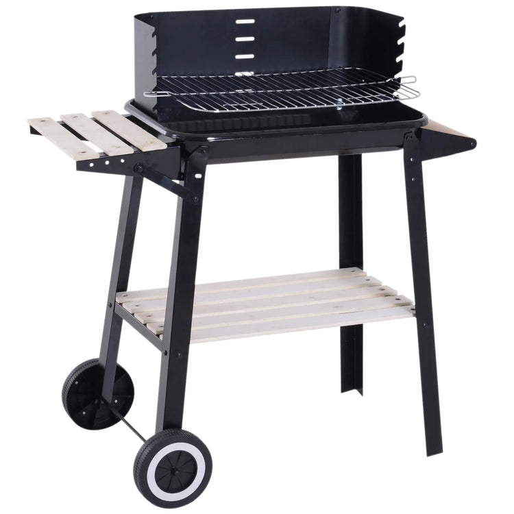 - Two wheels make this portable BBQ easy to move around your outdoor space