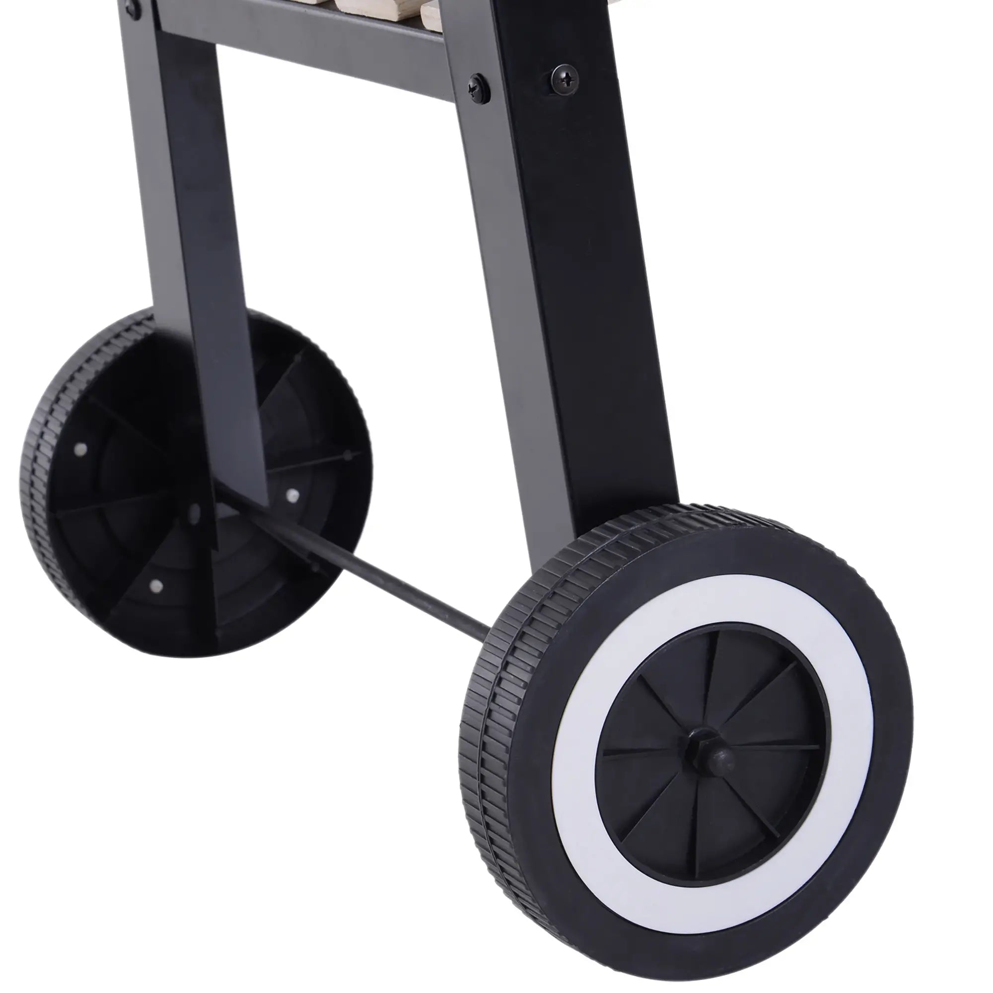 Charcoal BBQ Grill With Side Trays, Storage Shelf, Wheels
