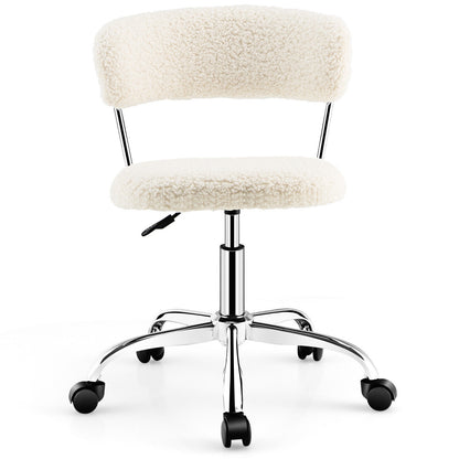 Computer Desk Chair Adjustable Sherpa Office Chair Swivel Vanity Chair, White