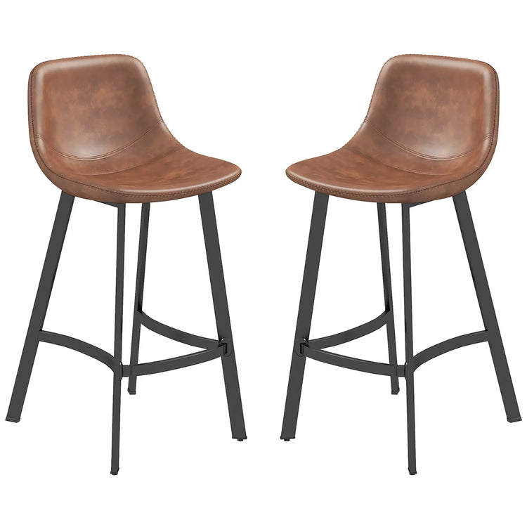 Enhance your home bar or kitchen island with these stylish counter height bar stools, featuring smooth PU leather upholstery and a sturdy black metal frame for an industrial chic look. Perfect for adding comfort and style to any space.