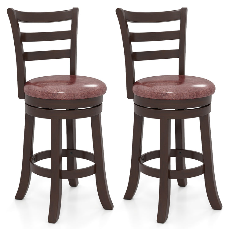 Counter Height Swivel Barstools Set of 2 with Faux Leather Seat and Wrap-around Footrest-24
