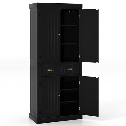 Freestanding Kitchen Cabinet, Adjustable Shelves, Black