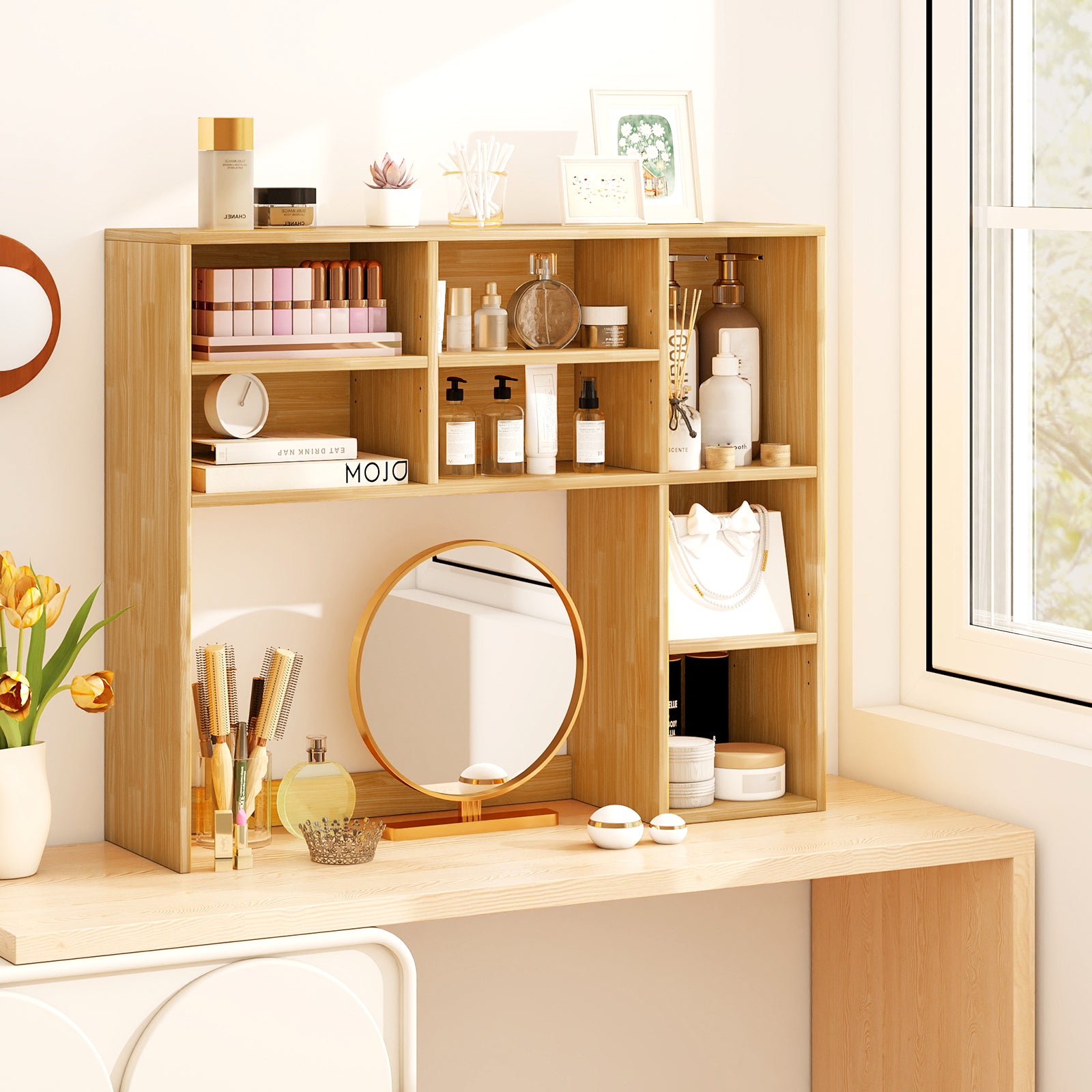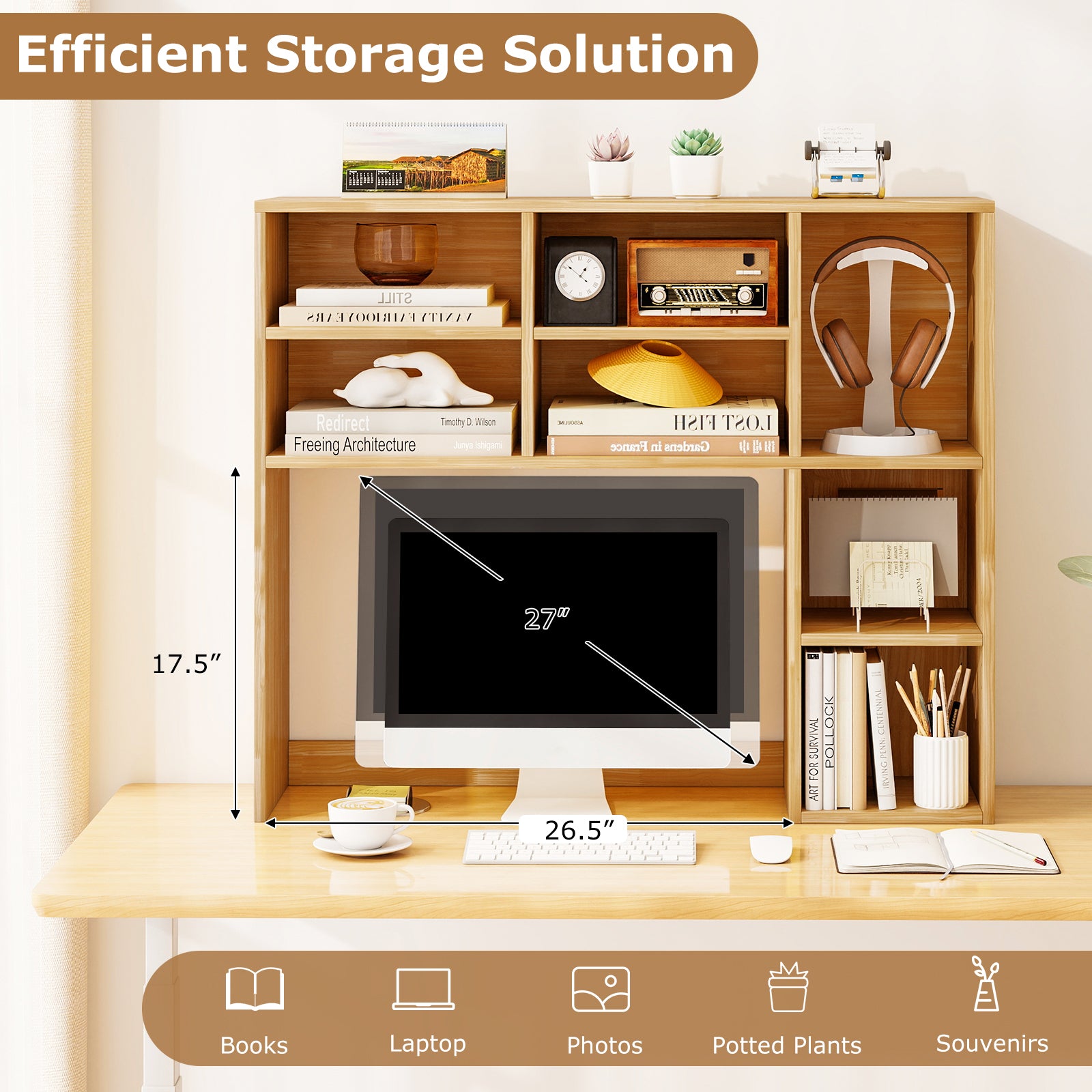Flexible Storage Space: The desk bookshelf features a spacious top shelf and 7 open cubbies that provide sufficient storage and display options for daily supplies. Featuring 3 shelves that can be set in 5 positions within 1.2", this desk storage hutch adapts easily to items of various sizes.