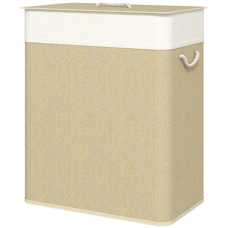 Double Laundry Basket with Lid, 100L Bamboo Hamper, Natural