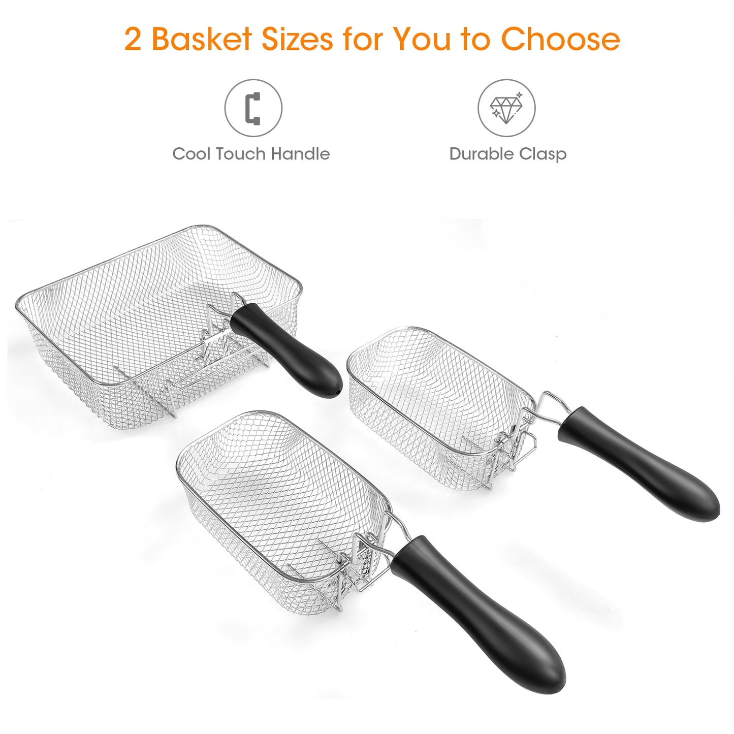 Safe and Convenient to Use: With cool-touch handles, you can easily hold the body and baskets. The lid with a view window allows you to pay attention to the frying process and protect you from the hot oil splash. Additionally, anti-slip pads at the bottom ensure the overall stability and prevent scratches on the countertop.