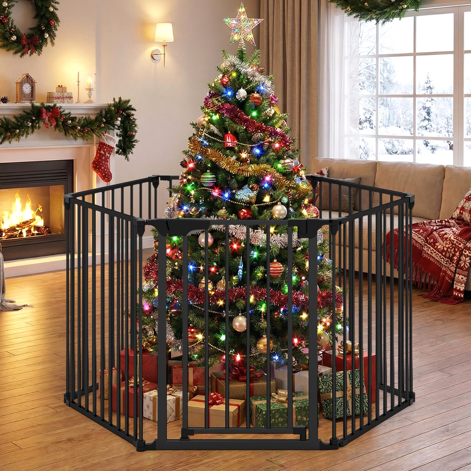 Versatile Protection for Different Needs: Serving well beyond a simple play yard, the adaptable gate offers protection as a fireplace screen, an oversize baby gate for wide doorways, or a pet enclosure. It is a multifunctional barrier designed to safeguard little ones and animals across various household situations.