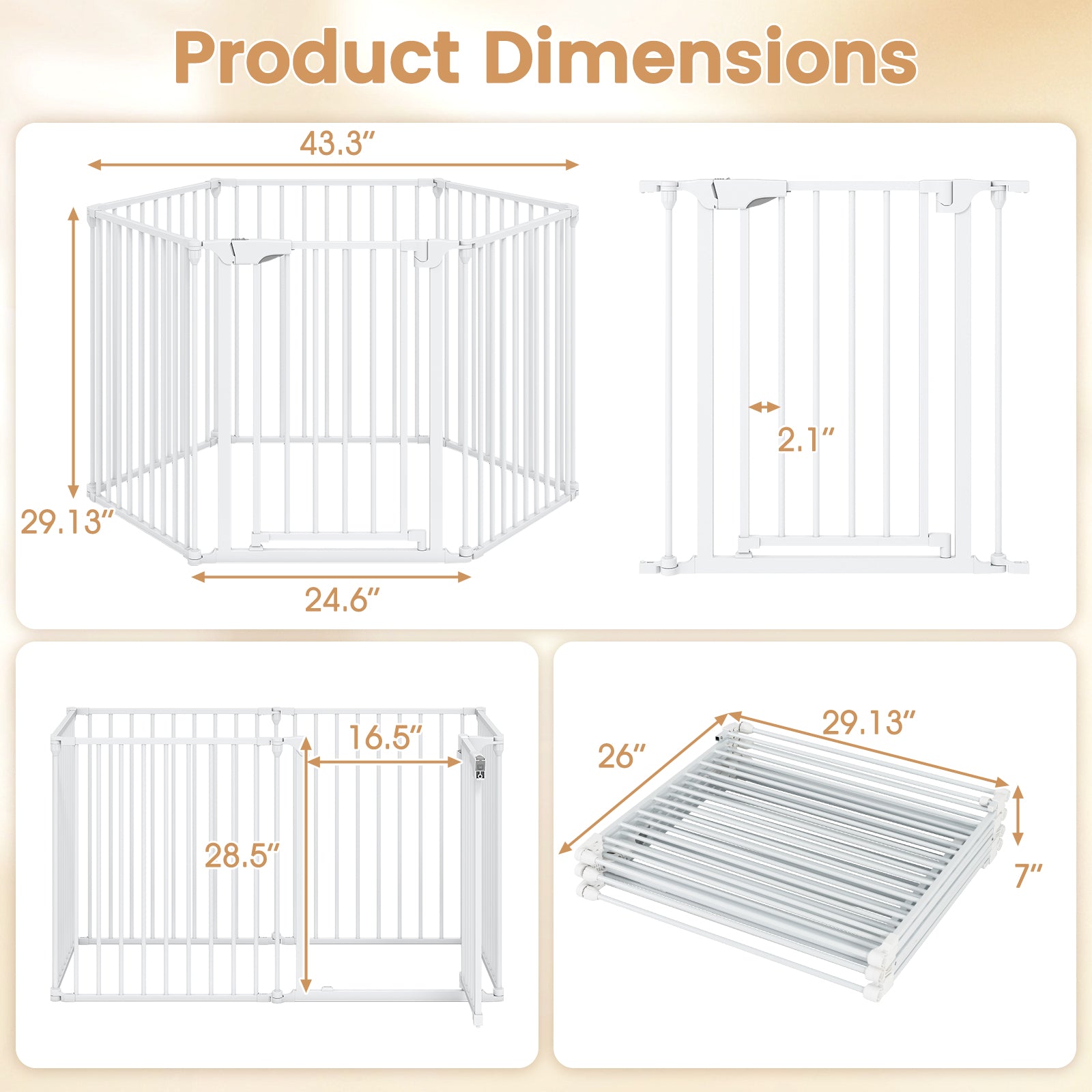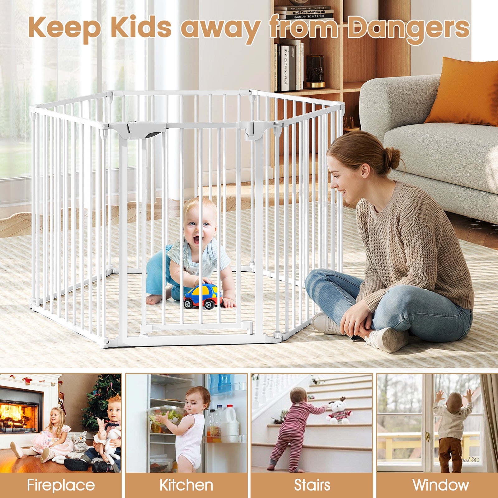 Versatile Protection for Different Needs: Serving well beyond a simple play yard, the adaptable gate offers protection as a fireplace screen, an oversize baby gate for wide doorways, or a pet enclosure. It is a multifunctional barrier designed to safeguard little ones and animals across various household situations.