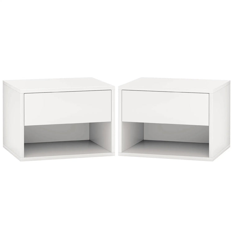 Floating Nightstand Set of 2, Wall Mounted Bedside Table, White