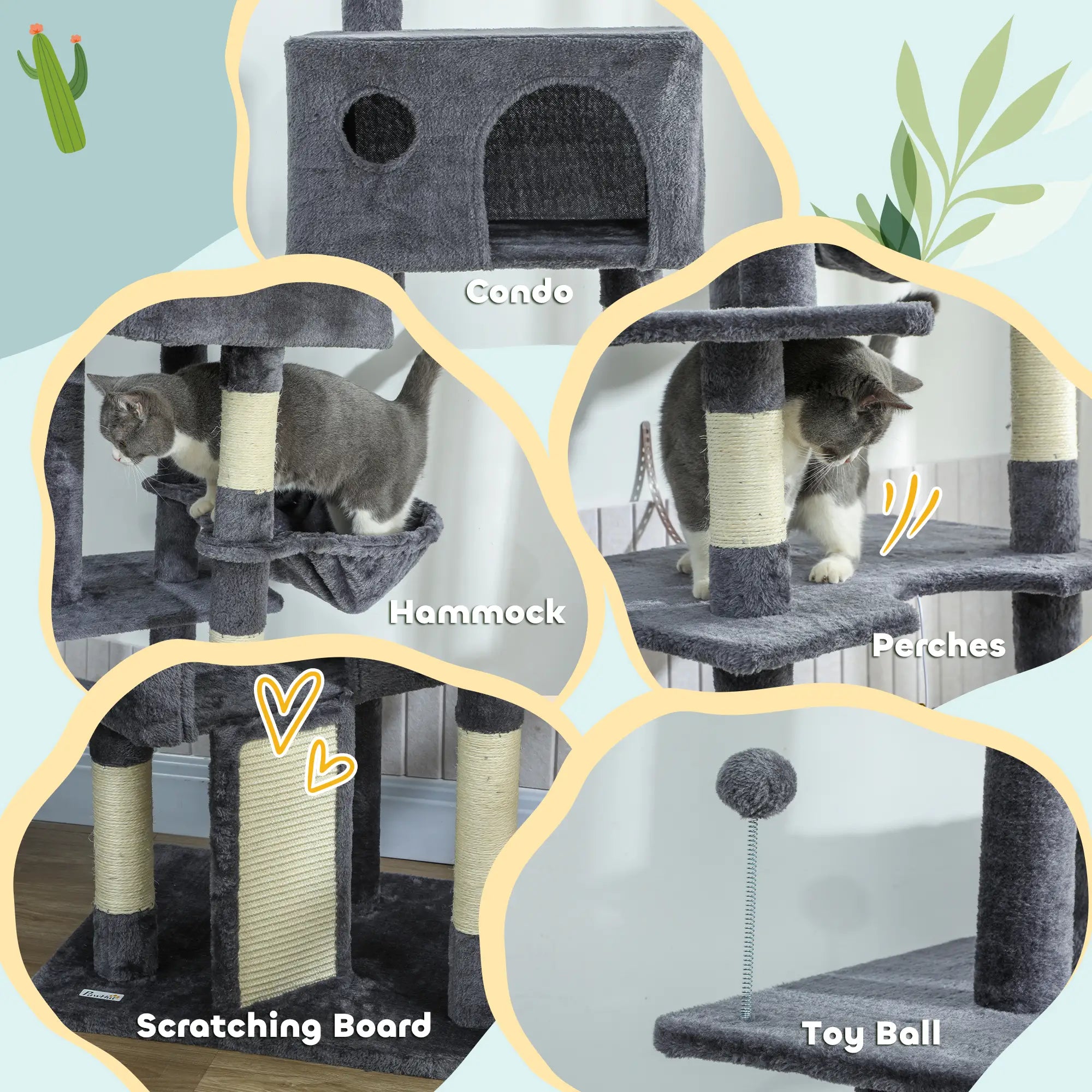 - Multi-Cat Activity Hub: Includes two condos, a hammock, climbing ladder, staggered platforms, and three playful balls for varied rest and play options.