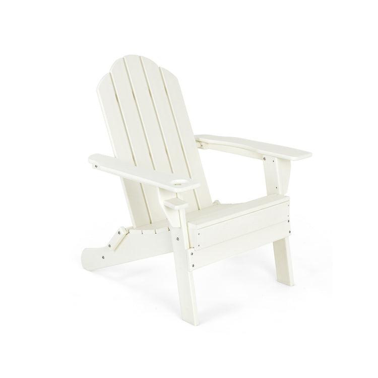 Foldable Weather Resistant Patio Chair with Built-in Cup Holder, White