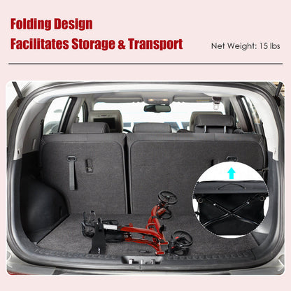Folding Aluminum Rollator Walker with 8 inch Wheels and Seat, Red