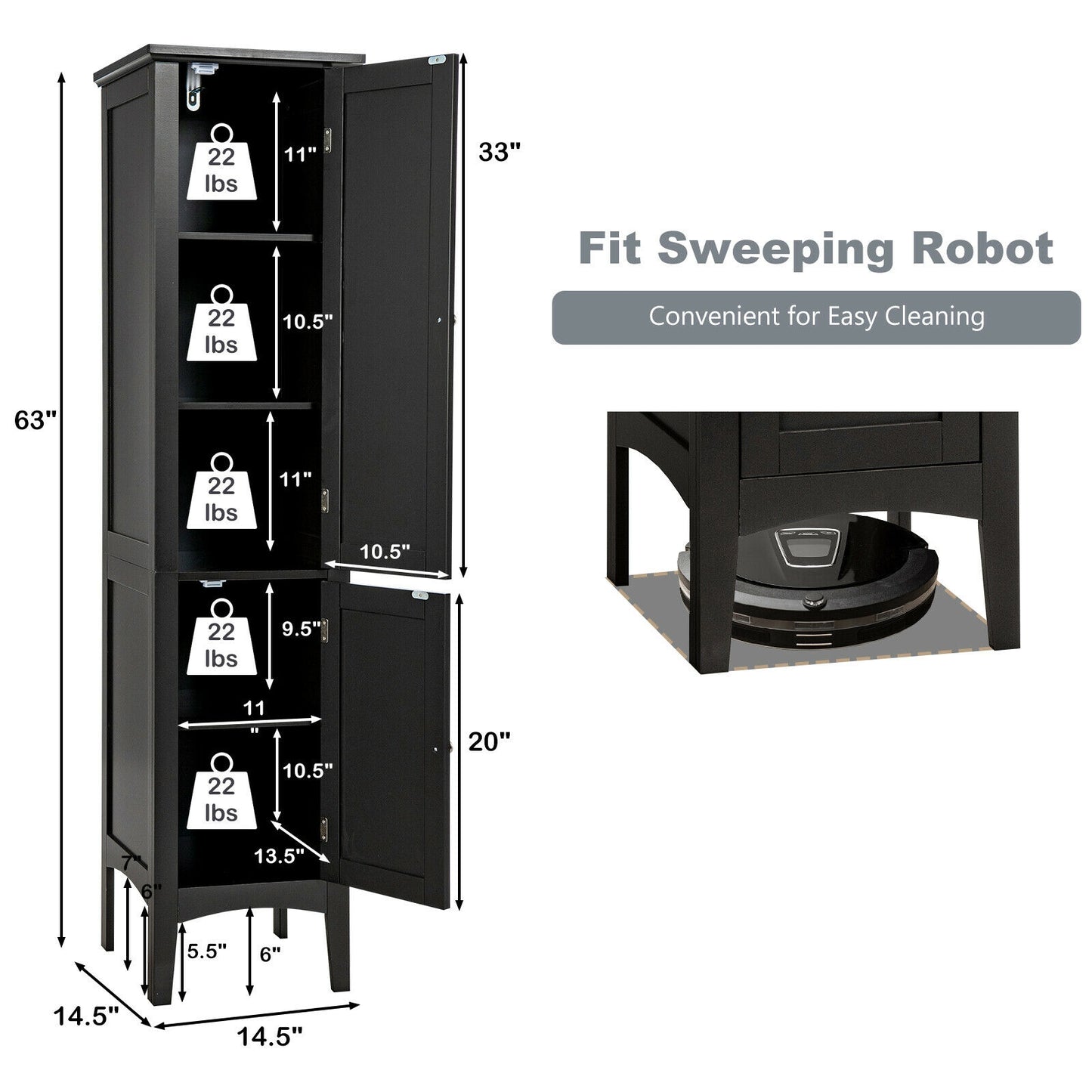 Easy to Assemble: Overall Dimension: 14.5" W x 14.5" D x 63" H. You just need to put a few parts together and you’ ll get a wonderful cabinet. The installation manual offers a detailed identification of each part and a clear illustration of the assembly process. It can be easily completed by following the steps.