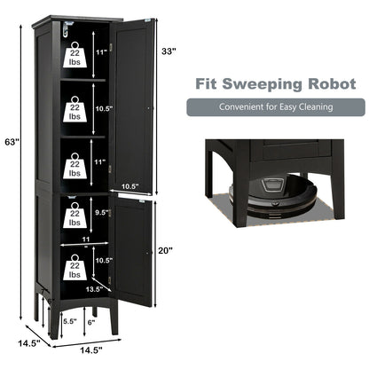Freestanding Bathroom Storage Cabinet for Kitchen and Living Room, Black