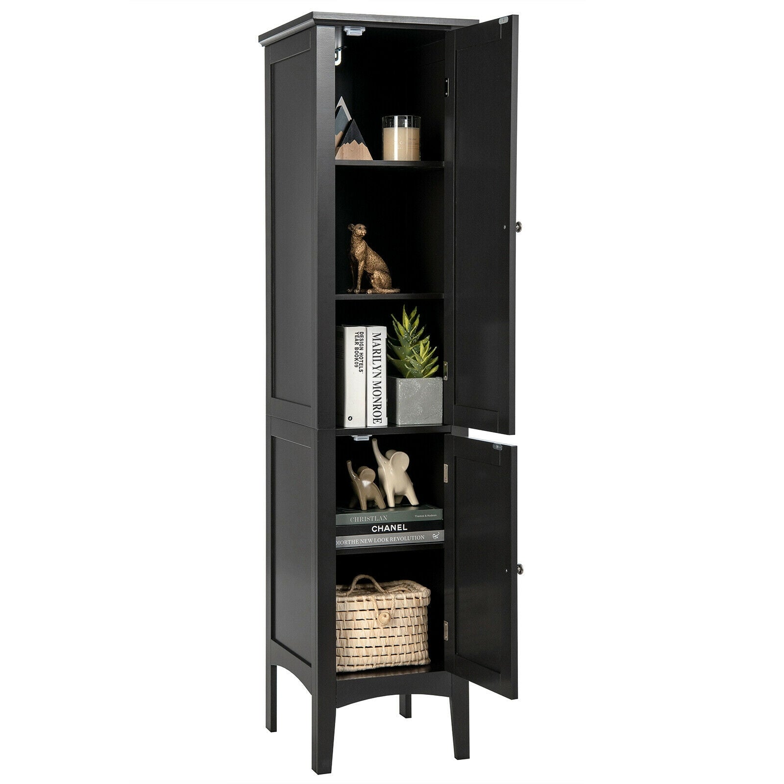 Humane-designed Details: This tall bathroom cabinet is built on four raised feet, ensuring that your items will be stored off the ground. Equipped with metal handles and magnetic buckles, the tall cabinet provides you the convenience to open the door smoothly while closing the door firmly.