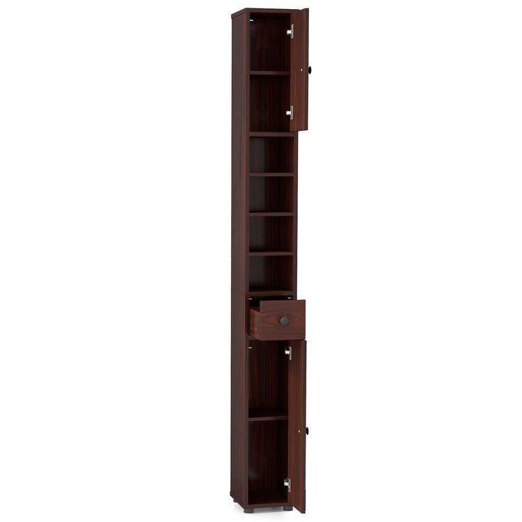 Freestanding Slim Bathroom Cabinet with Drawer and Adjustable Shelves, Brown