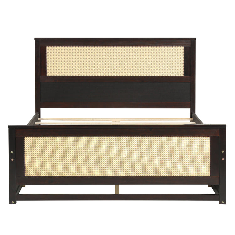 Full Size Rattan Bed Frame with Storage Drawers, Rustic Brown