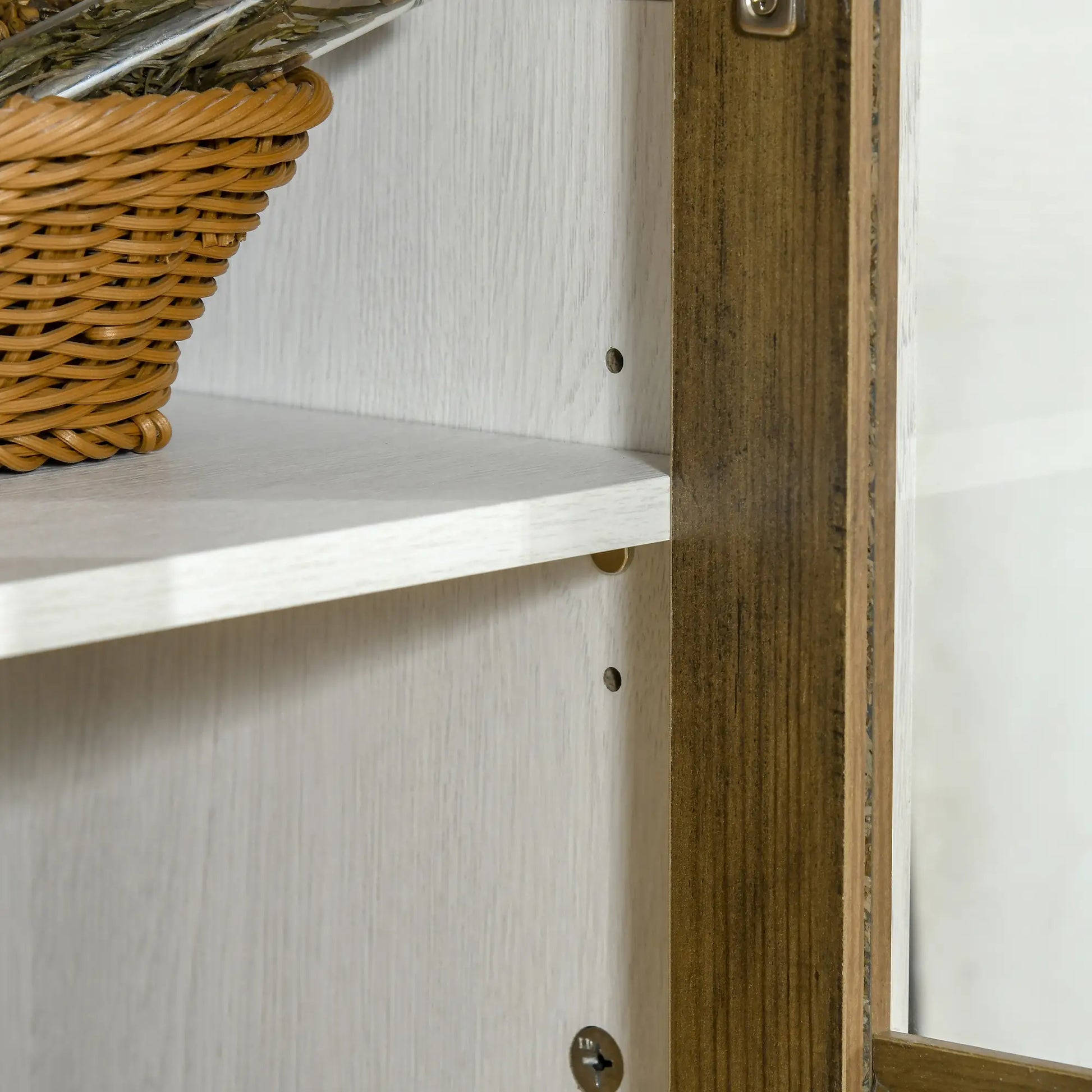 Glass Door Buffet Cabinet, 2 Doors, Adjustable Shelf, Distressed White, White