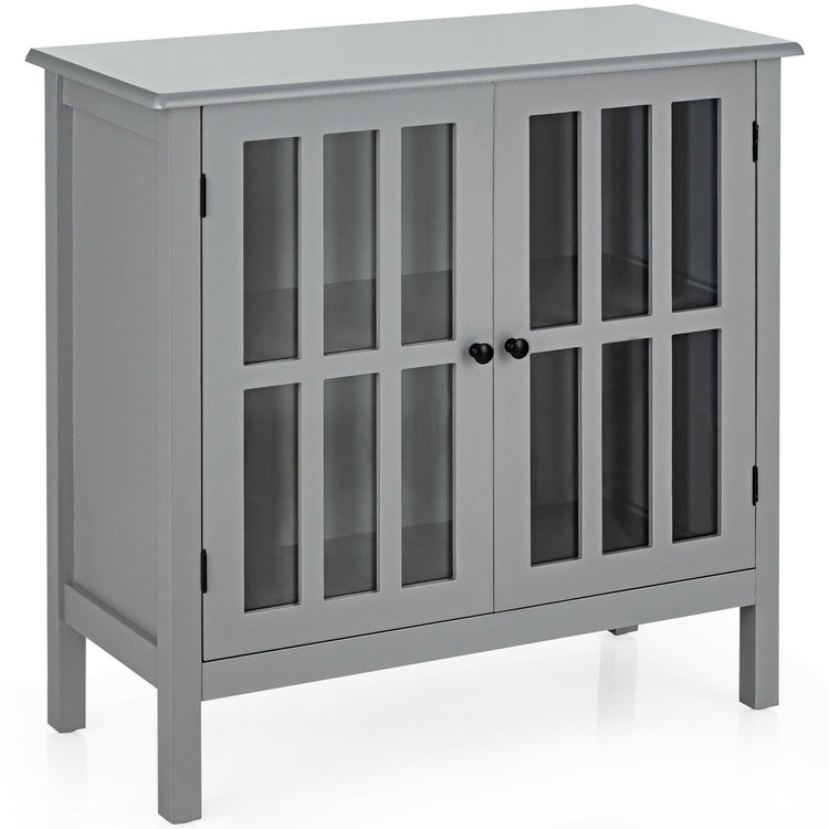 Glass Door Sideboard Console Storage Buffet Cabinet, Gray