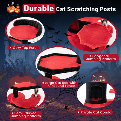 Gothic Cat Tree with Cat Bed Cat Condo and Sisal Scratching Post, Black & Red