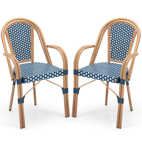 Hand-Woven PE Wicker Outdoor French Bistro Chairs Set of 2, Blue