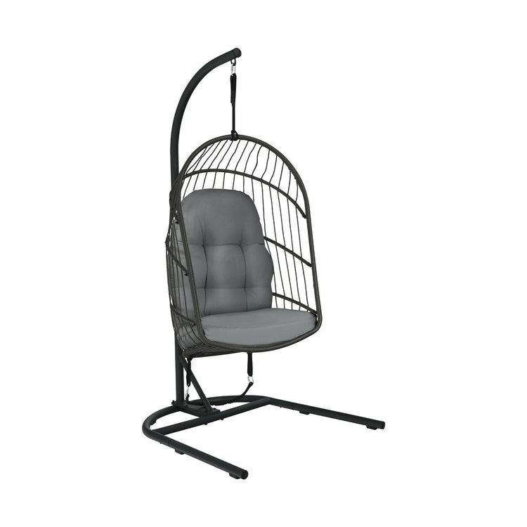 - Comfy swing egg chair with back cushion and seat cushion featuring thick foam padding for soft touch.