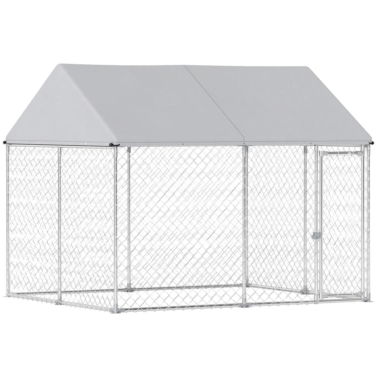 Heavy Duty Galvanized Steel Dog Kennel, Waterproof Roof, Lockable Latch, 9.2' x 7.5' x 7.2'