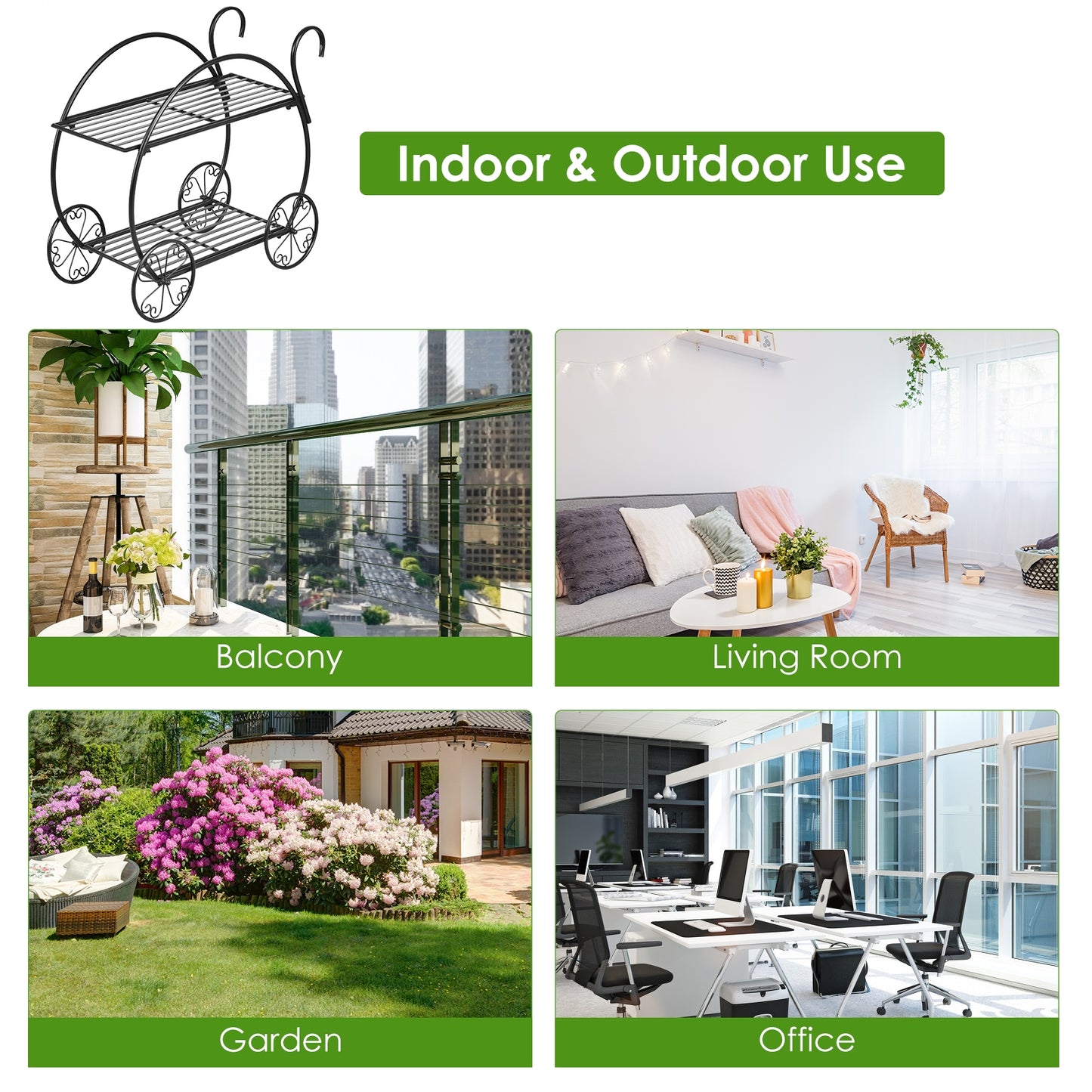 Heavy Duty Metal Flower Cart Plant Stand, Black
