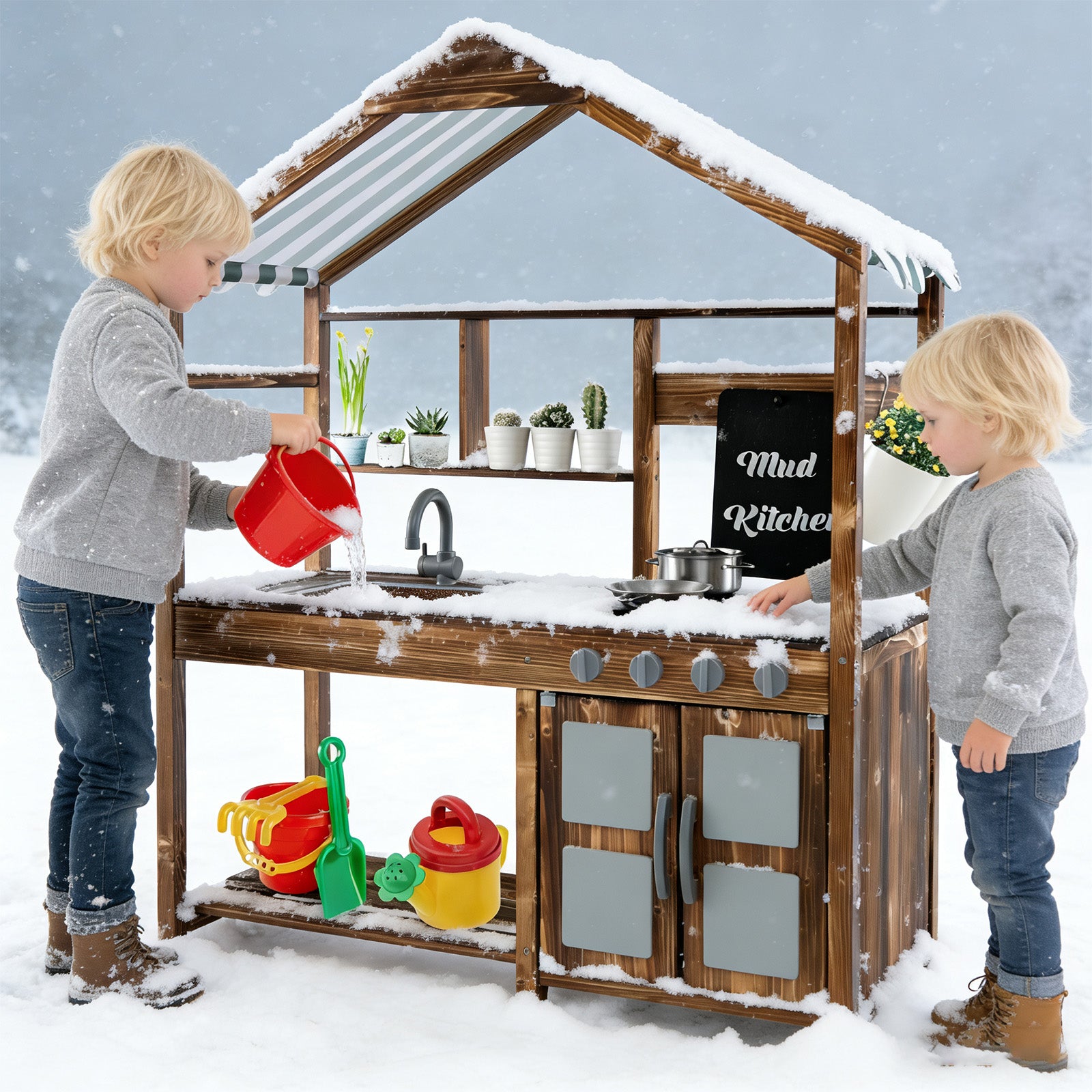 • Outdoor kids mud kitchen allows mud-based cooking simulation