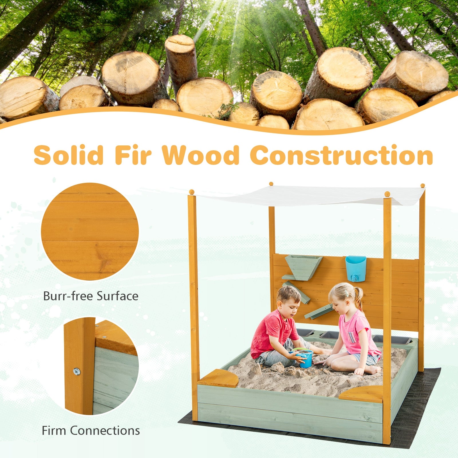 Kids Sandbox With Sand Wall, Removable Canopy, 3-8 Years