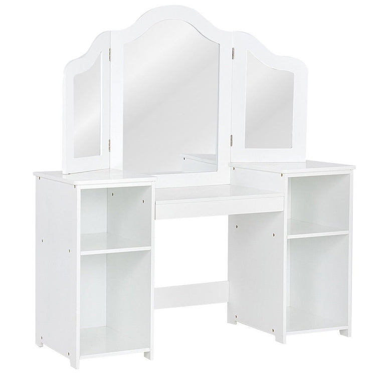 Kids Tri Folding Mirror Makeup Dressing Vanity Table Set, White