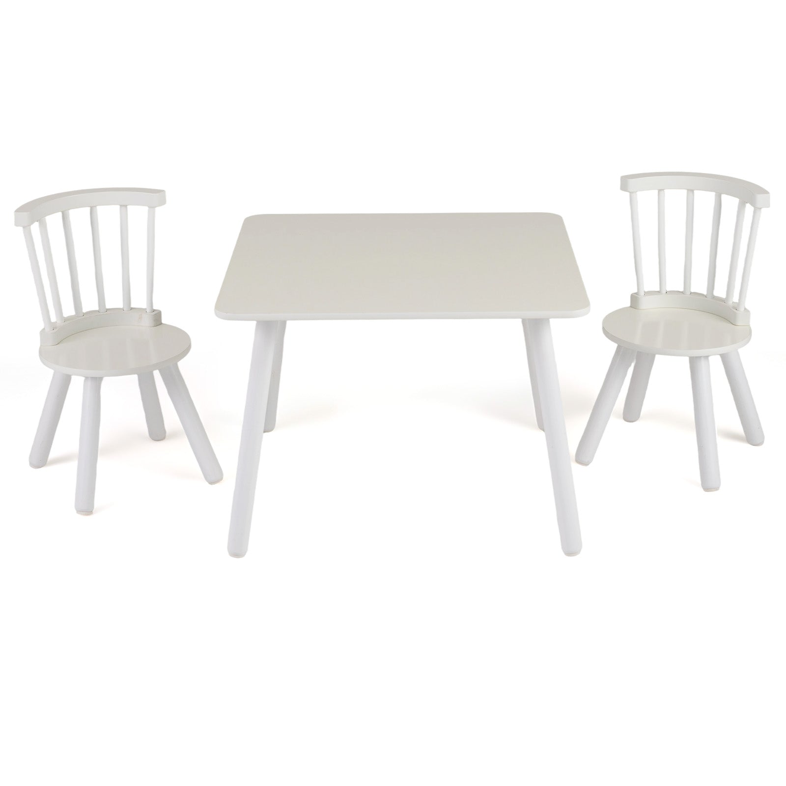Kids Wooden Table and Chairs Set 3-Piece Toddler Furniture with Pine Wood Frame, White