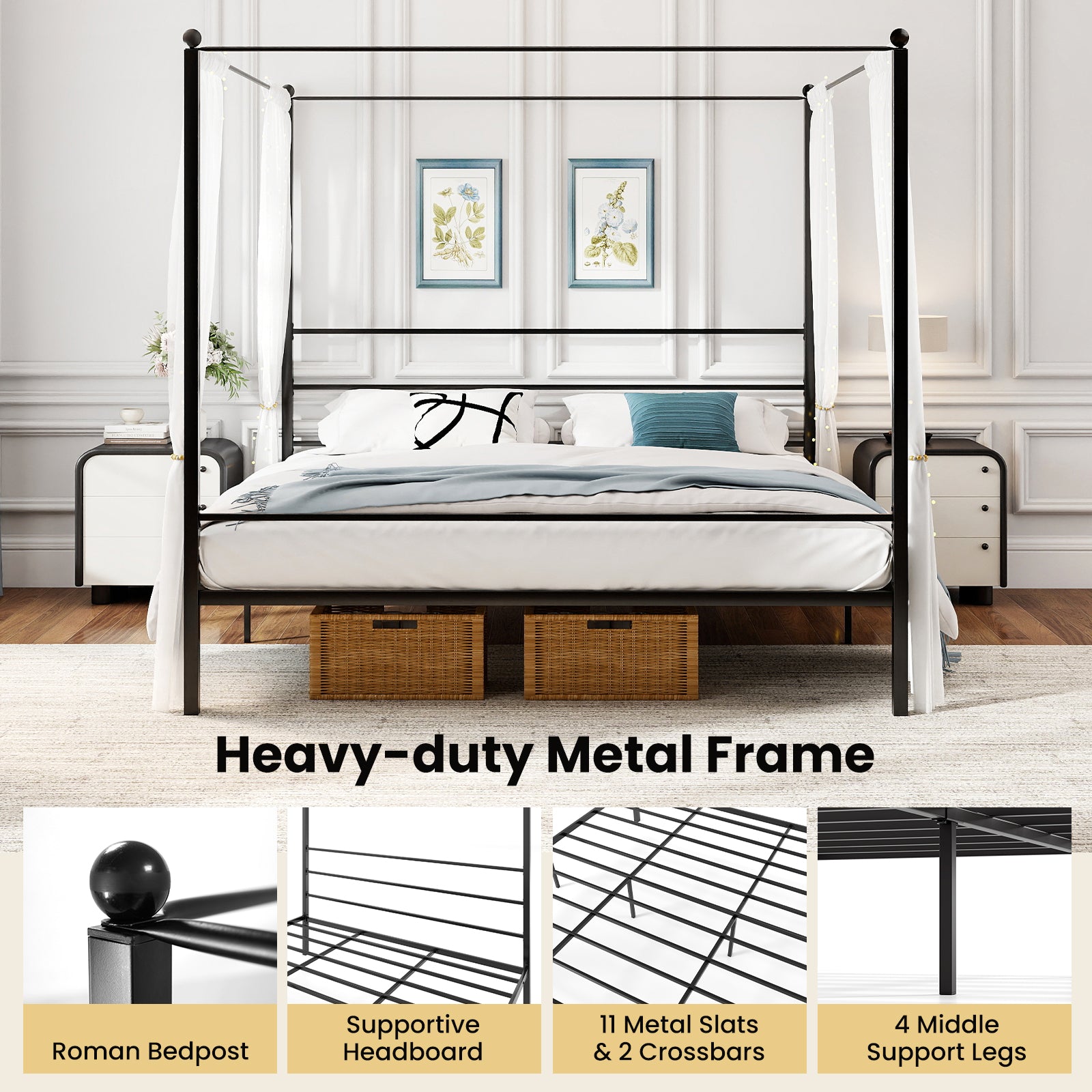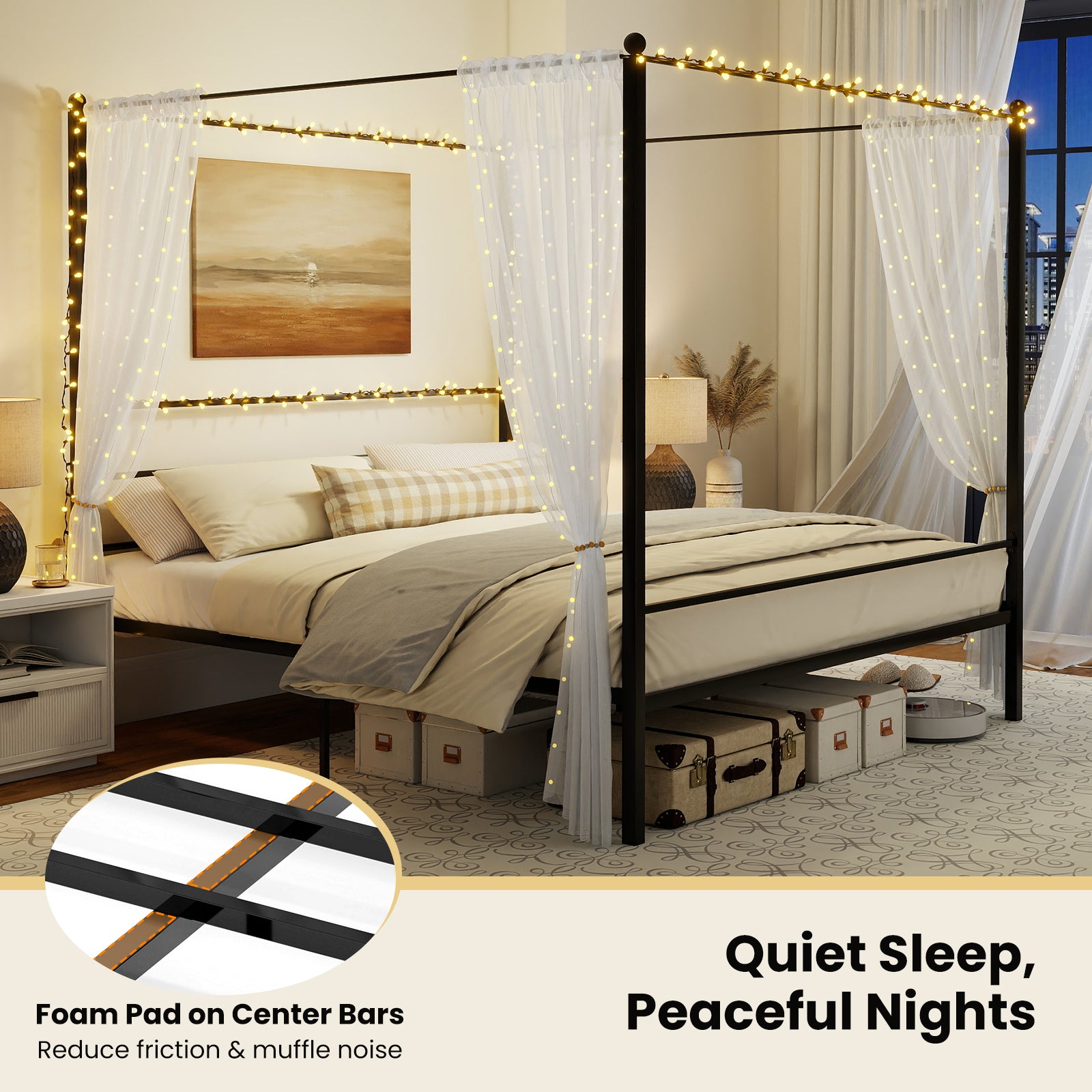 King Size Metal Canopy Bed Frame with Slat Support, Black
