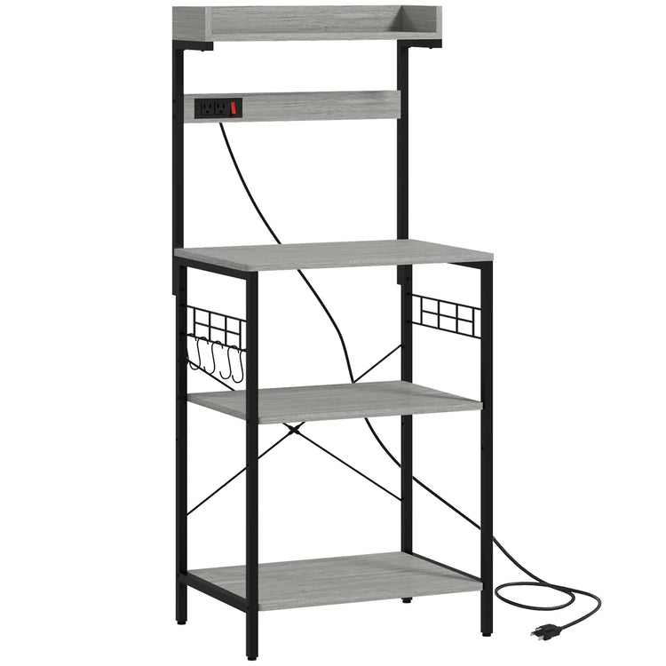 Kitchen Baker's Rack with Power Outlet, Adjustable Shelves, Distressed Grey, Grey
