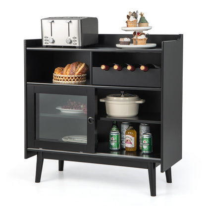 Kitchen Buffet Sideboard With Wine Rack, Sliding Door, Black