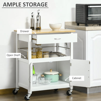 Kitchen Cart, Utility Trolley, Small Island with Drawer, White