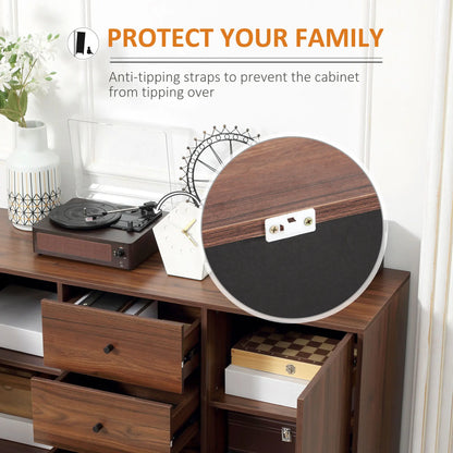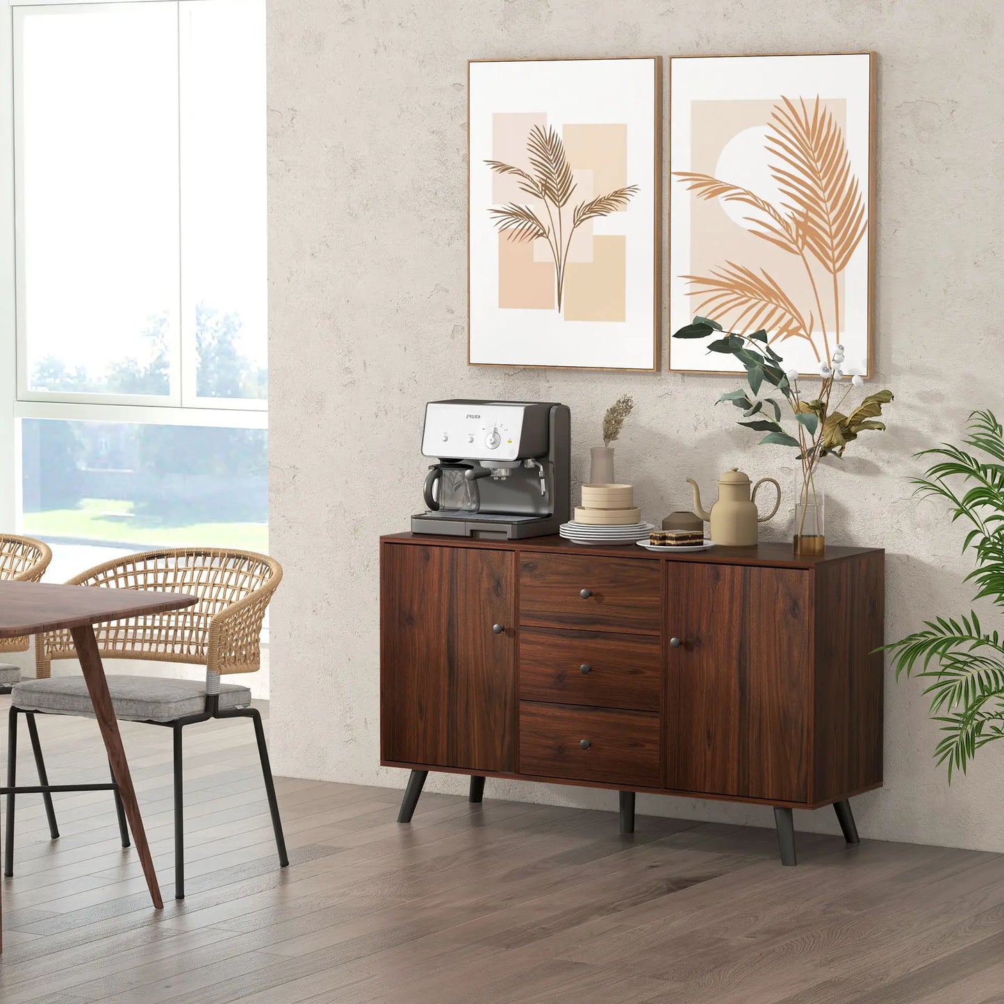 Kitchen Storage Sideboard, Buffet Cabinet, 2 Cupboard, 3 Drawers, Adjustable Shelves, Rustic Brown