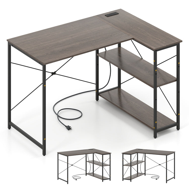 L-shaped 47 Inch Reversible Corner Desk with Adjustable Storage Shelves, Gray