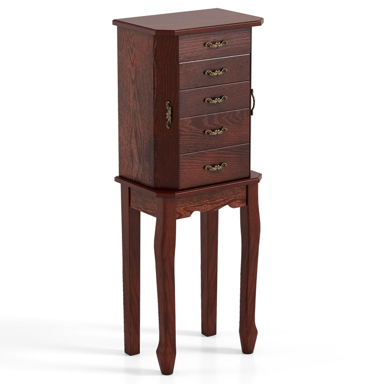 Large Jewelry Cabinet, 5 Drawers, Brown