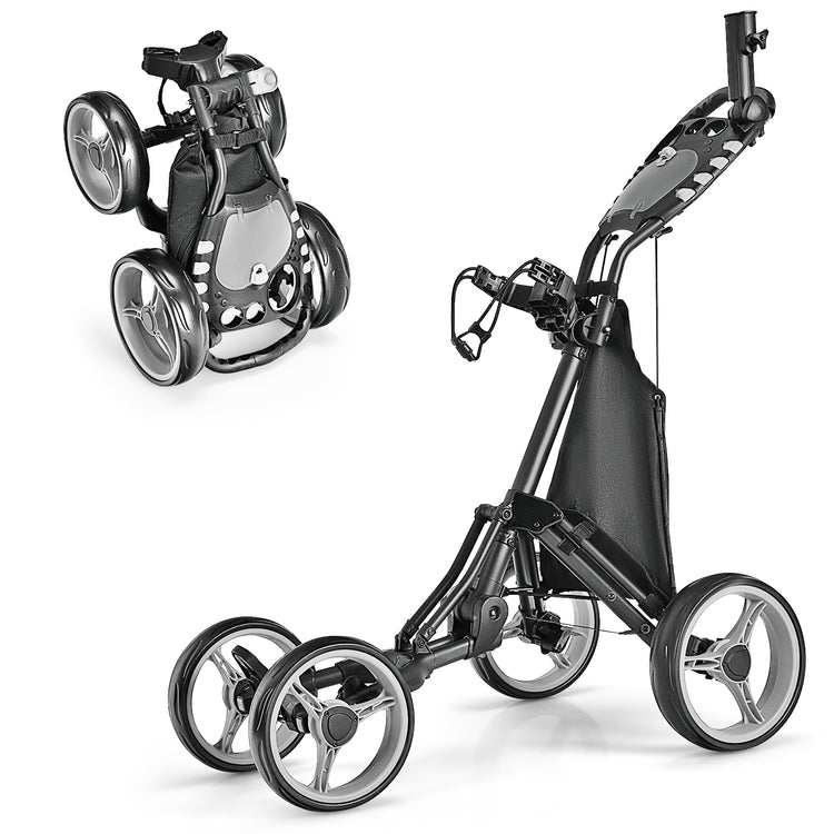 Lightweight Foldable Collapsible 4 Wheels Golf Push Cart, Gray