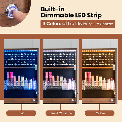 • Features a full-length mirror with dimmable LED light strip in three colors for easy jewelry selection.