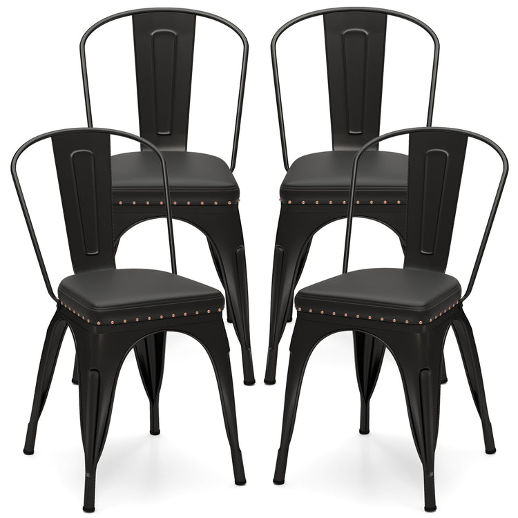 Metal Dining Chair Set of 4 Stackable Kitchen Chairs with Removable Backs and PU Leather Cushioned Seat, Black