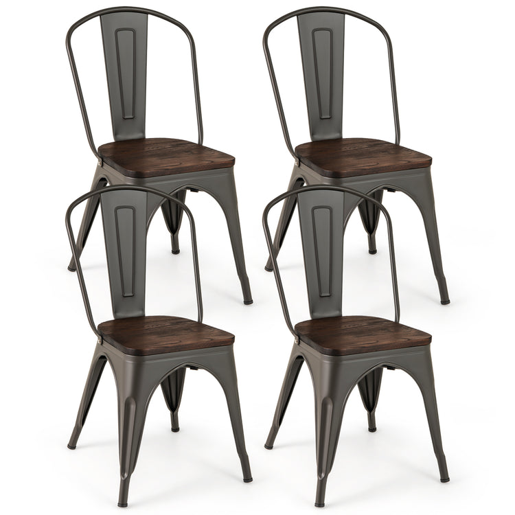 Metal Dining Chairs Set of 4 Tolix Style Stackable Kitchen Chairs with Wood Seat, Gun