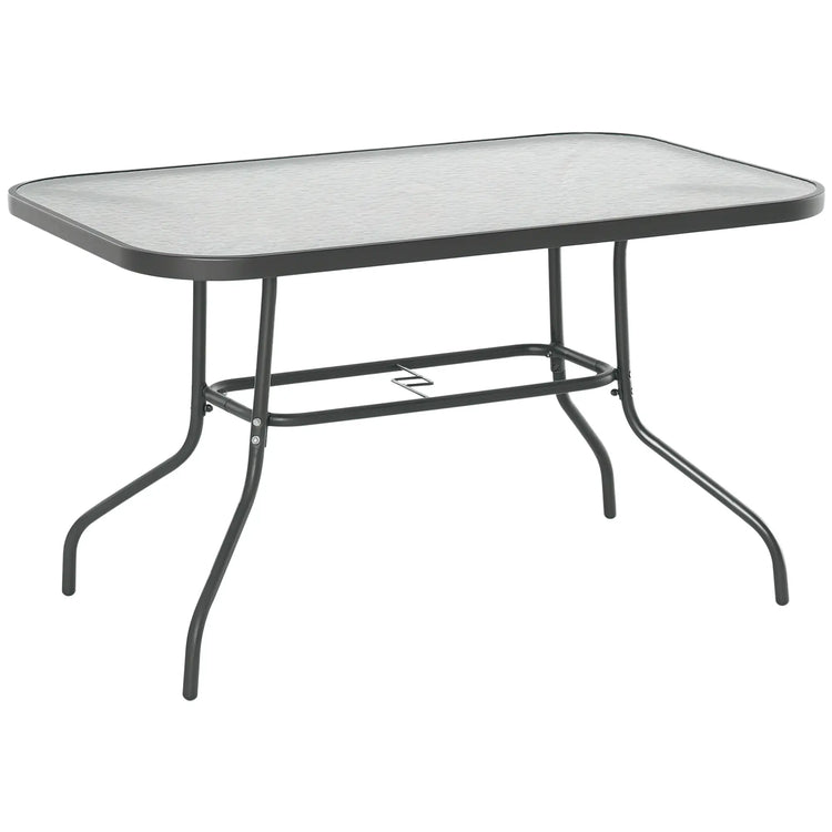 Metal Garden Dining Table, Umbrella Hole, Tempered Glass Top, 47.25" x 31.5"