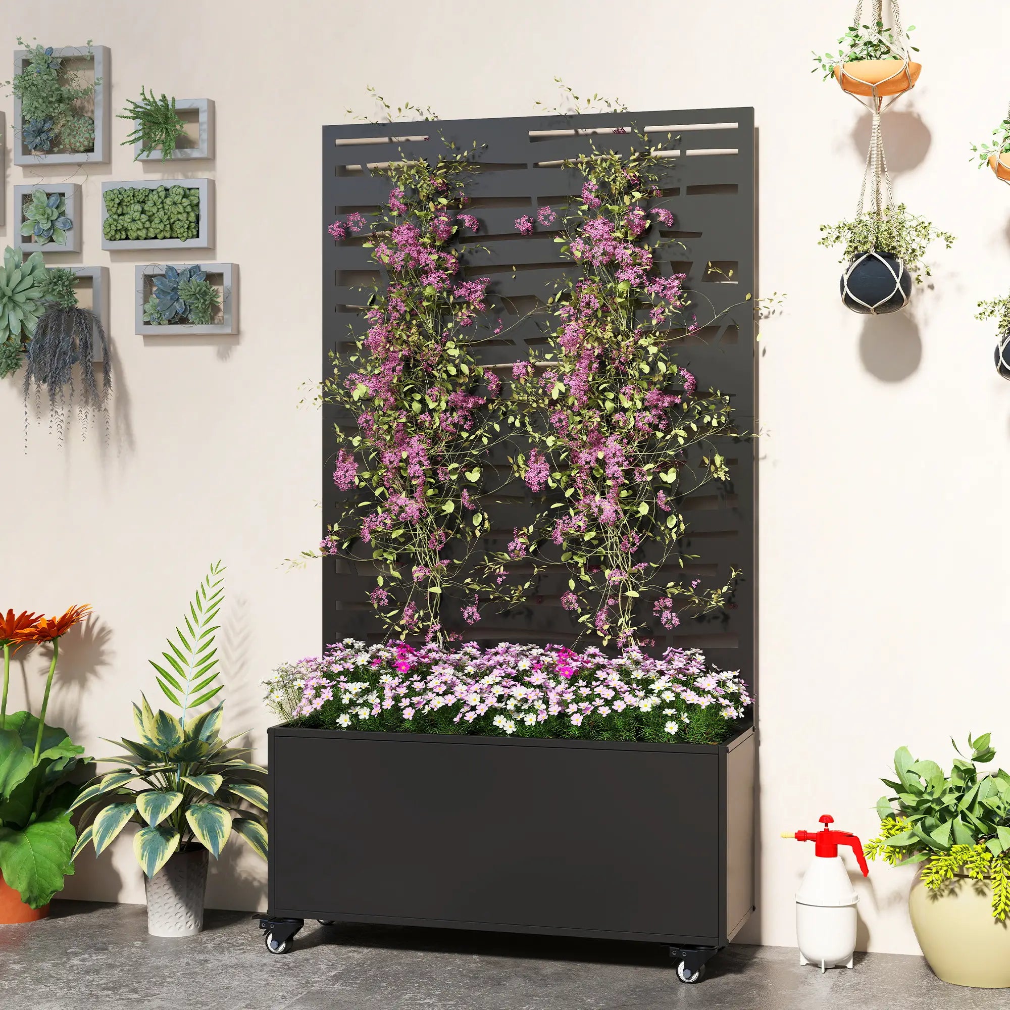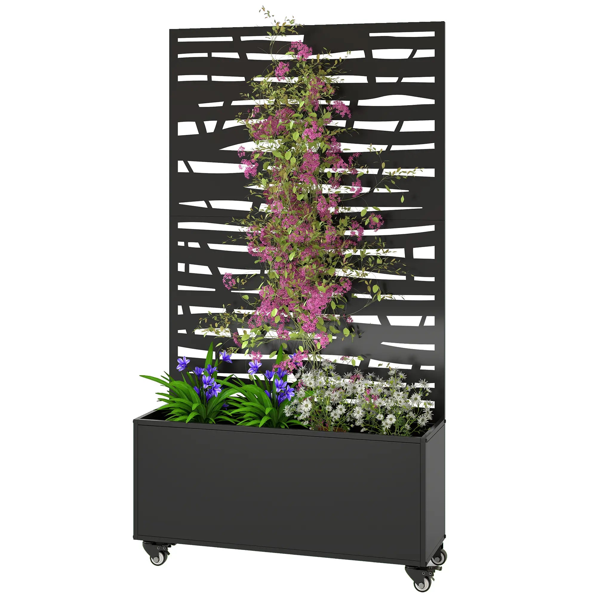 Metal Planter Box With Trellis, Raised Garden Bed With Privacy Screen