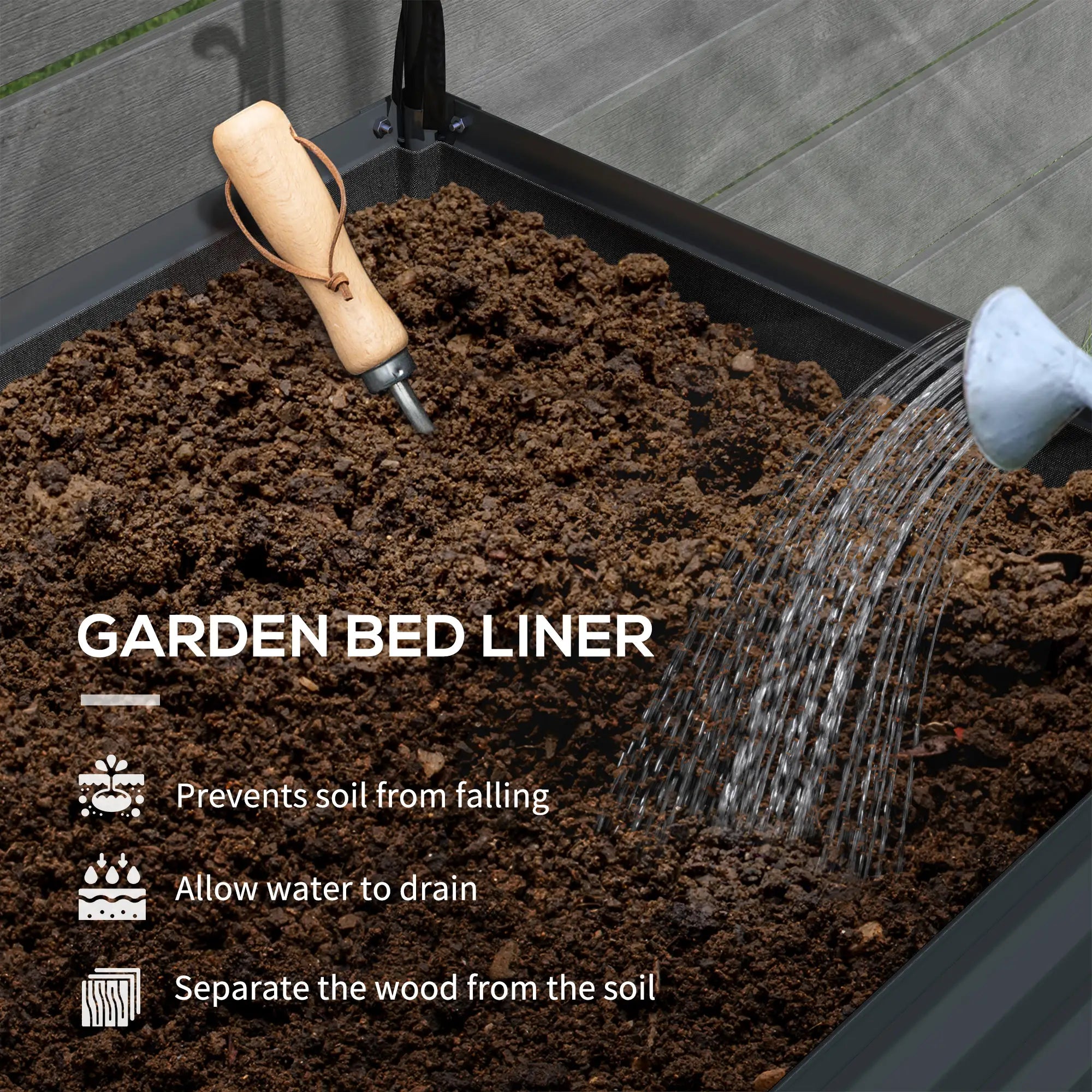 Metal Raised Garden Bed With Cover, With Bottom Shelf And Liner, Dark Grey