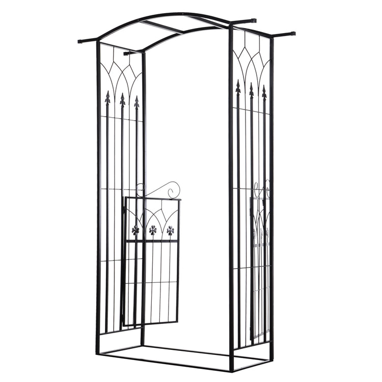 Enhance your garden's elegance with this classic arbor, perfect for climbing plants or as a stunning backdrop for weddings and special events. Its double gate design with intricate scrollwork and 4-leaf clover details adds charm and privacy to any outdoor space.