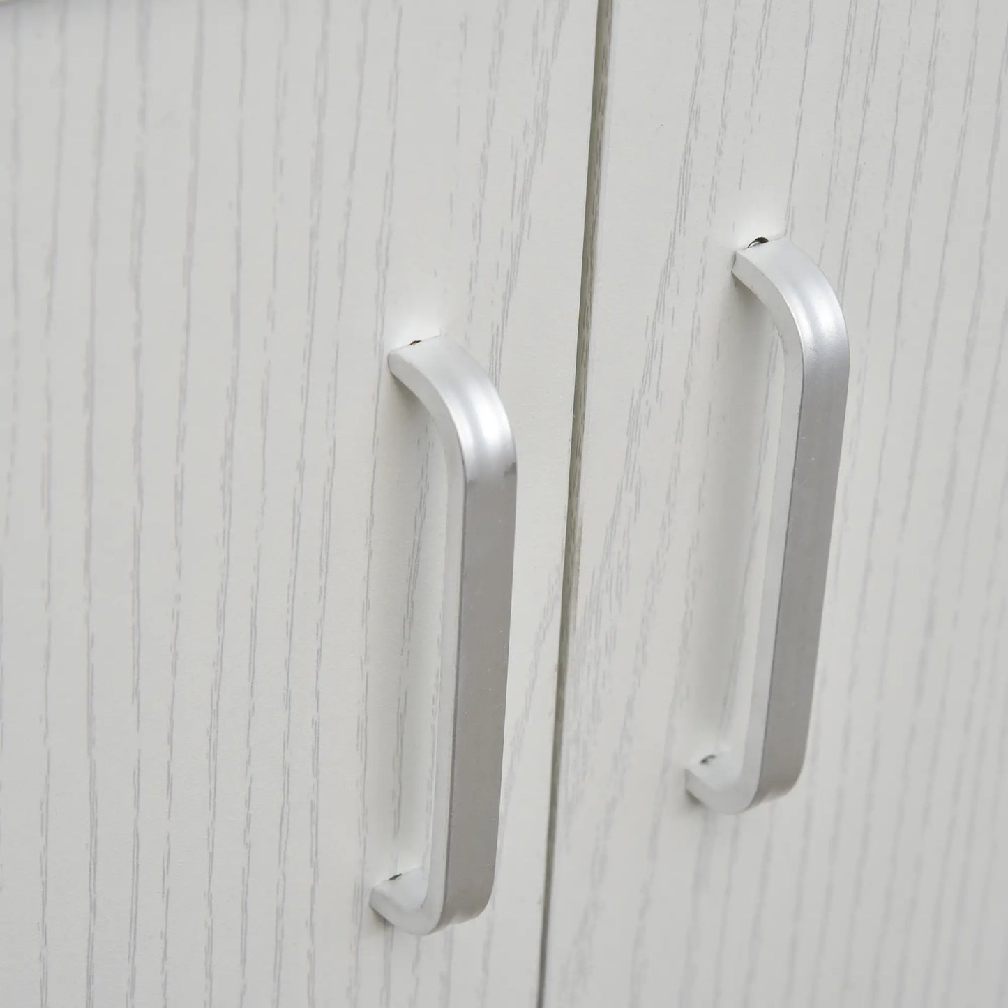 Microwave Cart on Wheels, 2-Door Cabinet, White Oak, White
