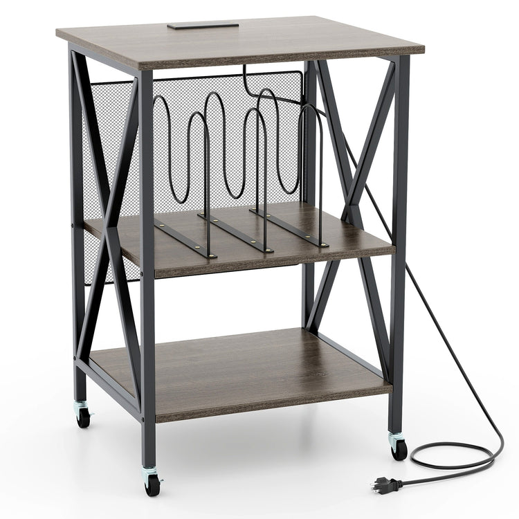 Mid-Century Record Player Stand with Built-in Charging Station, Gray