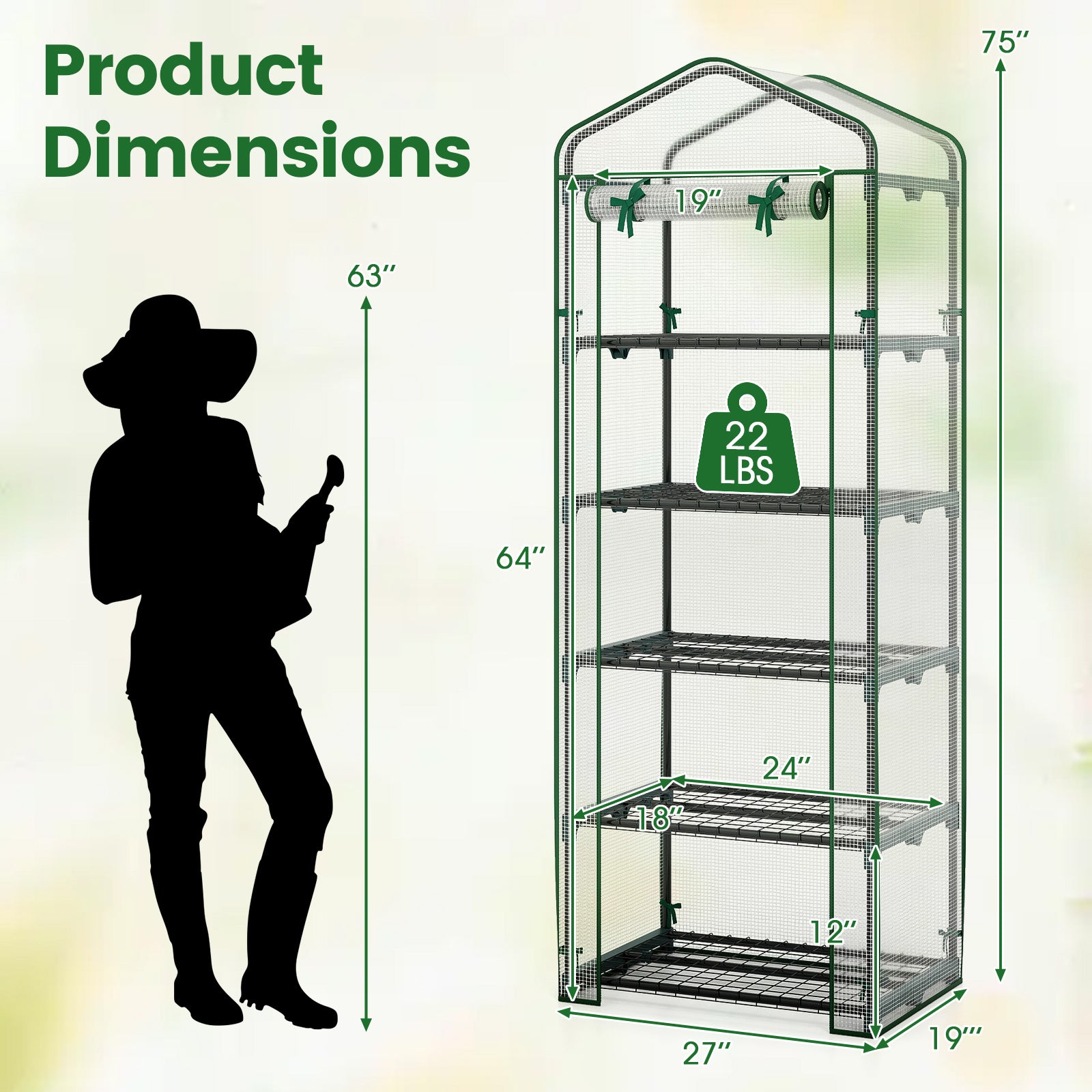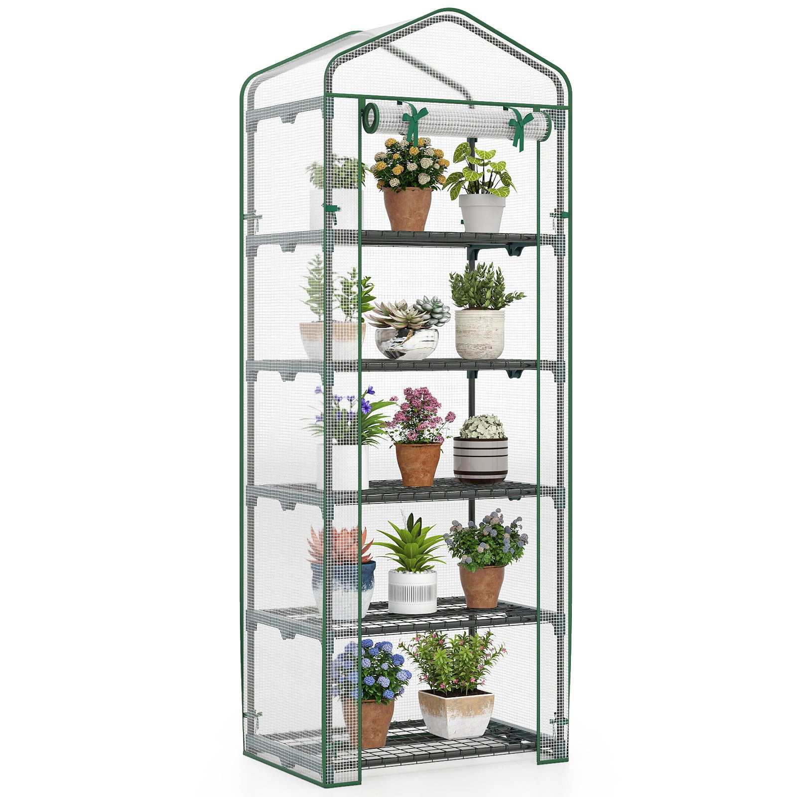 Mini Greenhouse Portable Plant Grow House with 5 Tier Shelves, White
